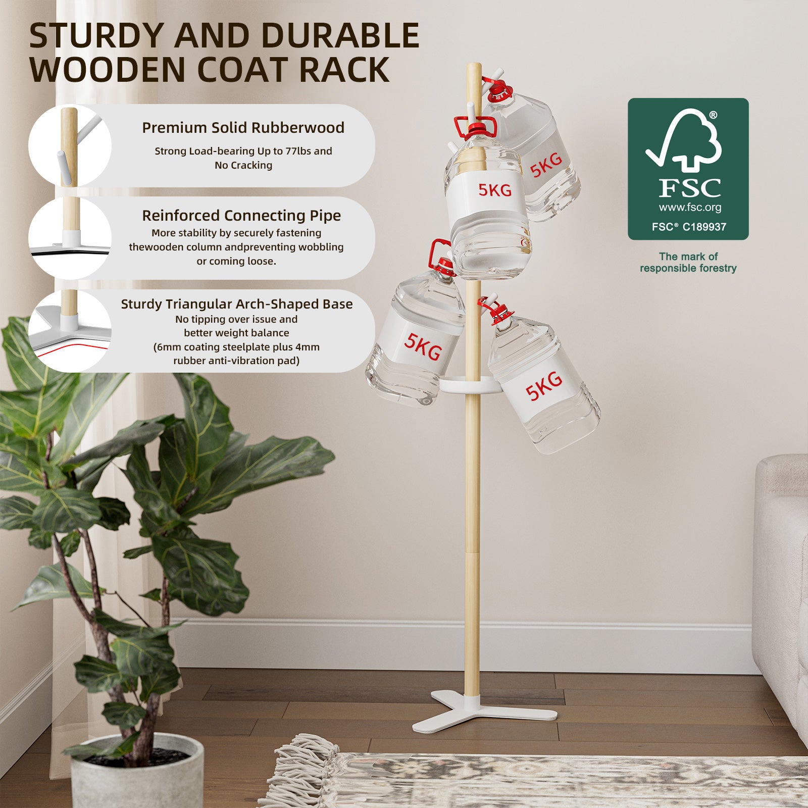Robust und langlebig Diese KAPANOU- Garderobe ist aus hochwertigem, massivem Gummibaumholz mit einer Lackschicht gefertigt und hochwertigem Stahlmaterial , wodurch es wasserdicht, stabil und rostbeständig. Das verwendete Holz ist FSC-zertifiziert und umweltfreundlich . Der stabile Standfuß aus einer 6 mm dicken Stahlplatte und einem 4 mm starken Antivibrationspad sorgt für hervorragende Stabilität und verhindert ein Wackeln beim Aufhängen mehrerer Gegenstände.