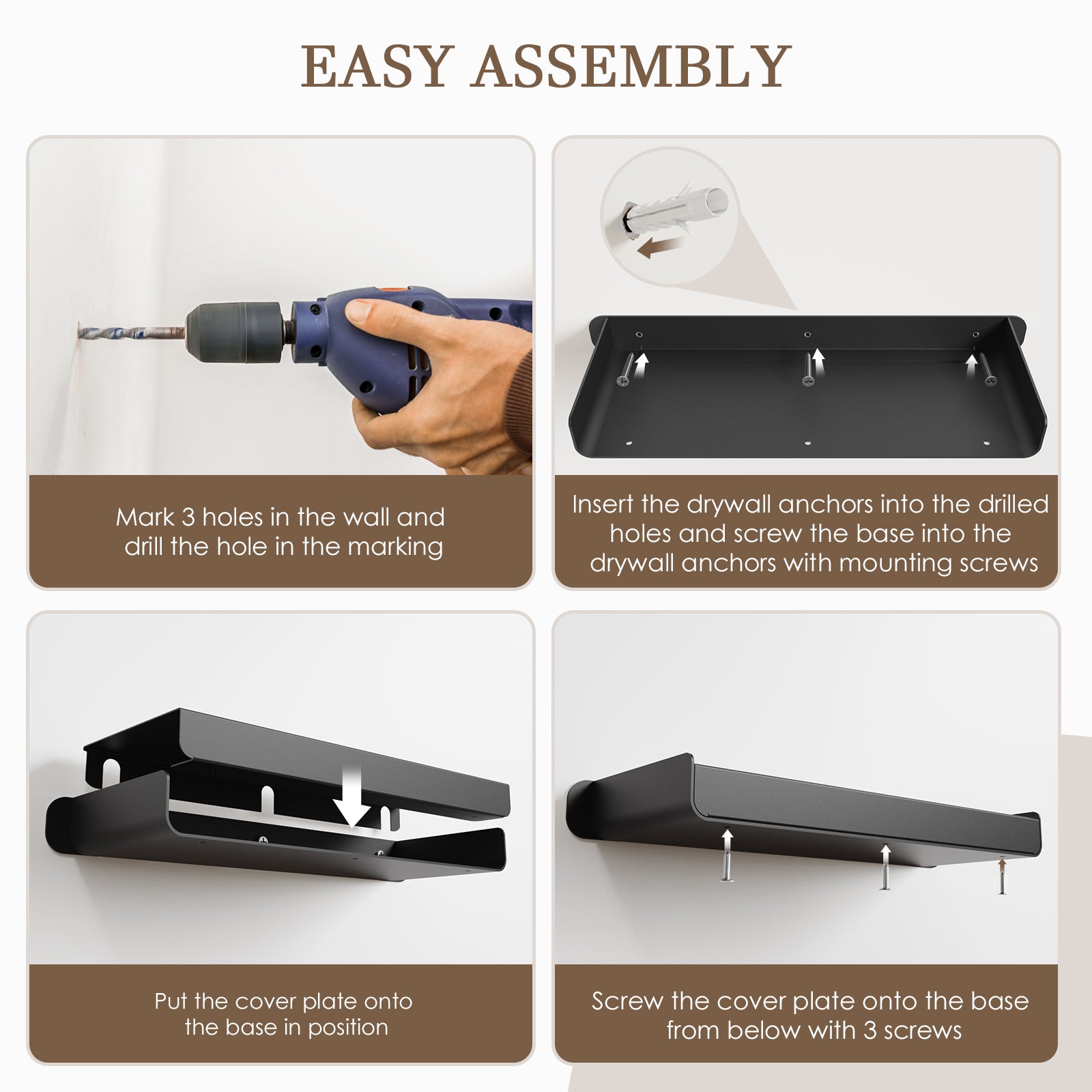 【Easy Assembly】All accessories are provided, including expansion screws and screws, along with clear instructions for easy installation. With just a few simple steps, you can effortlessly secure the floating shelf on the wall within 5 minutes.