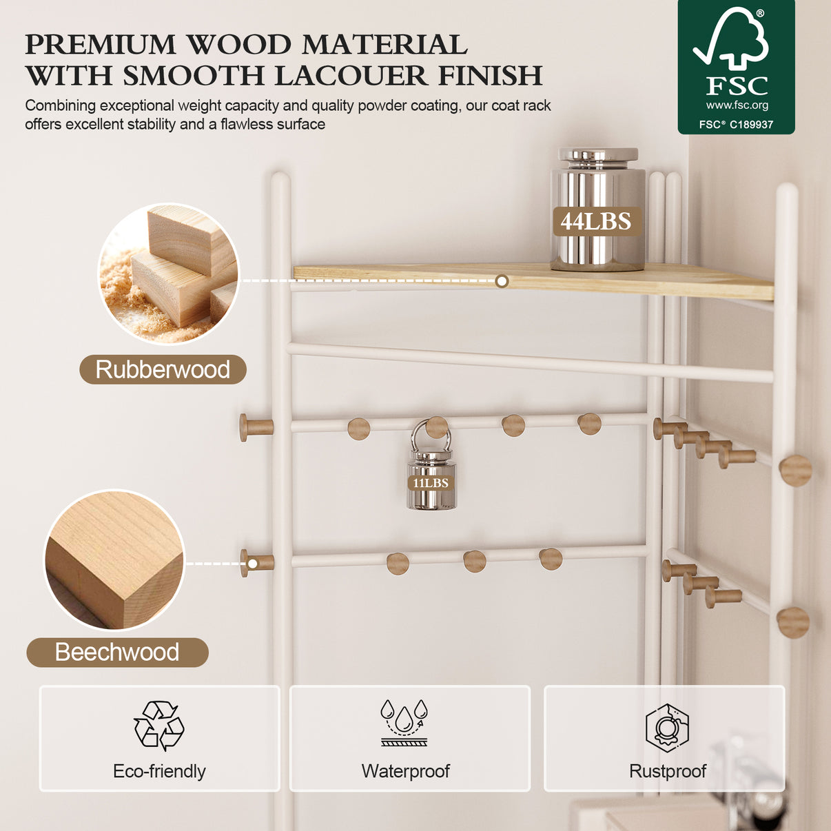 Award-Winning DesignOur coat rack, honored with the 2023 New York Design Award, features a unique combination of metal and wood. It serves as a modern and decorative organizer, adding both functionality and style to any space in your home.