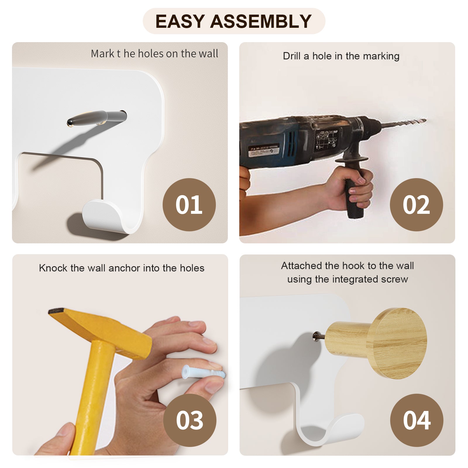 【Easy Assembly】It’s quite easy to install our wall-mounted coat hooks on the wall. Just mark the holes on the wall, drill a hole in the marking then knock the wall anchor into the holes. Last attached and twist the hook to the wall using the integrated screw. If you encounter any issues, please feel free to contact us anytime.