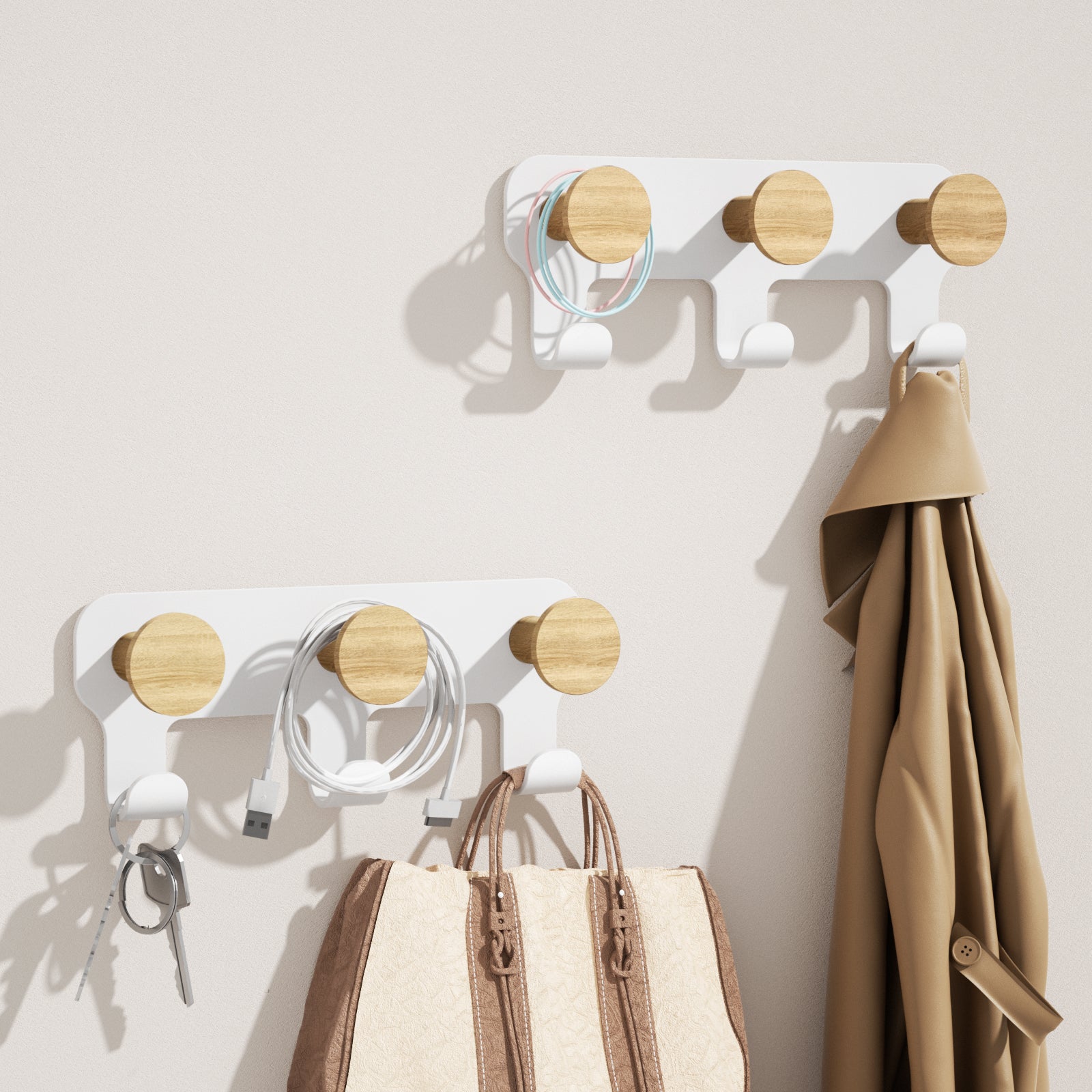 【Unique Double Hooks Design】For better space saving and to maximize storage possibilities, our wall hanger features a dual-hook design combining a wooden hook and a metal hook. With rounded and smooth edges, our coat hooks will not harm any of your clothing. Perfect for hanging heavy coats, sweaters, hats, kid's backpacks, necklaces, towels, kitchenware, and more.