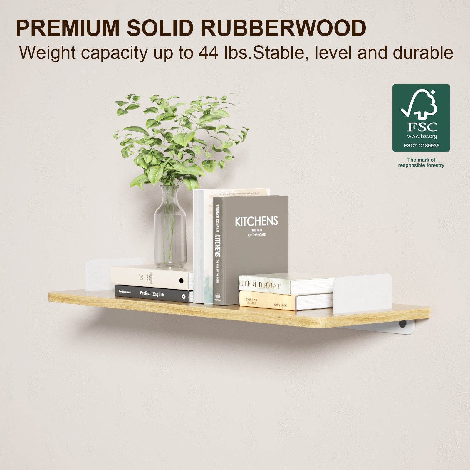 【Sturdy And Durable Wood Shelves】KAPANOU floating shelves are made of premium solid rubberwood with a varnish layer and high-quality aluminum alloy, making it waterproof, rust-resistant and stable. The wood used is FSC-certified and environmentally friendly. With brackets and strong weight capacity, it can easily hold up to 44 pounds and prevent items from falling.