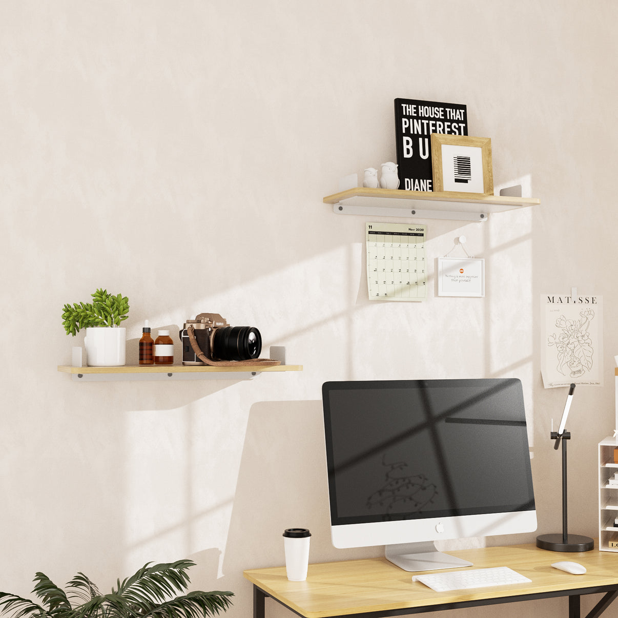 KAPANOU is committed to designing furnishings that are both stylish and functional. These minimalist color-blocked floating wall shelves not only add a decorative touch to your home but also provide ample space for displaying or storing various items. Perfect for books, photo frames, plants, and kid's toys, as well as organizing toiletries in the bathroom or condiments in the kitchen, making your home tidy and organized. It’s simple and modern design creates an aesthetically pleasing and orderly arrangement of items in your home, bringing you a sense of relaxation and joy.