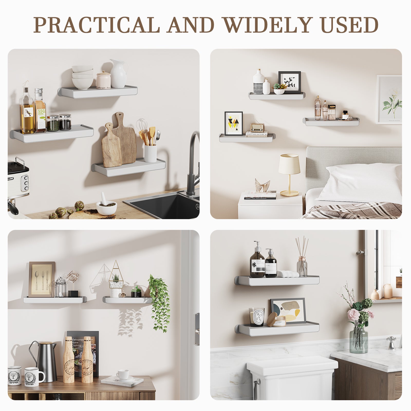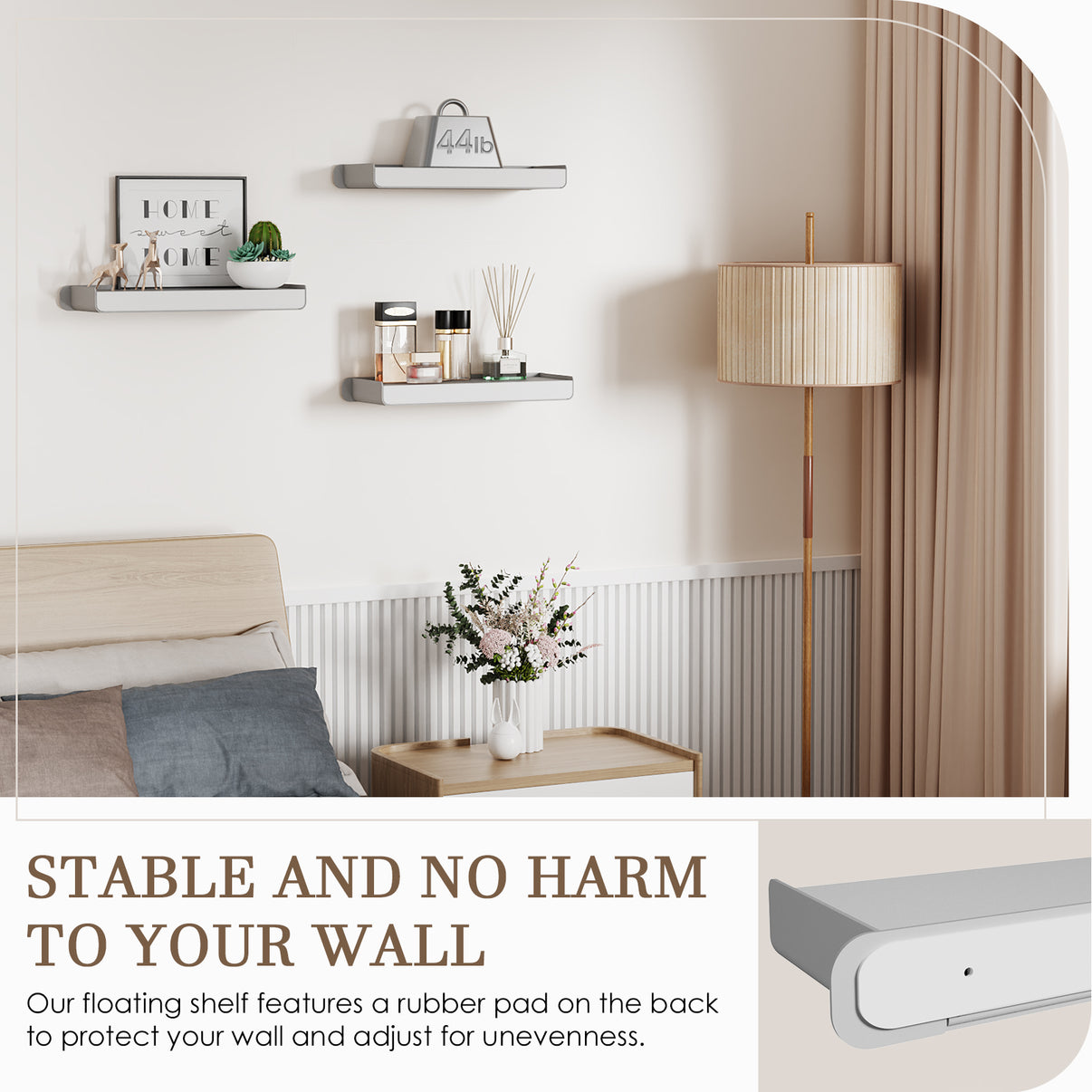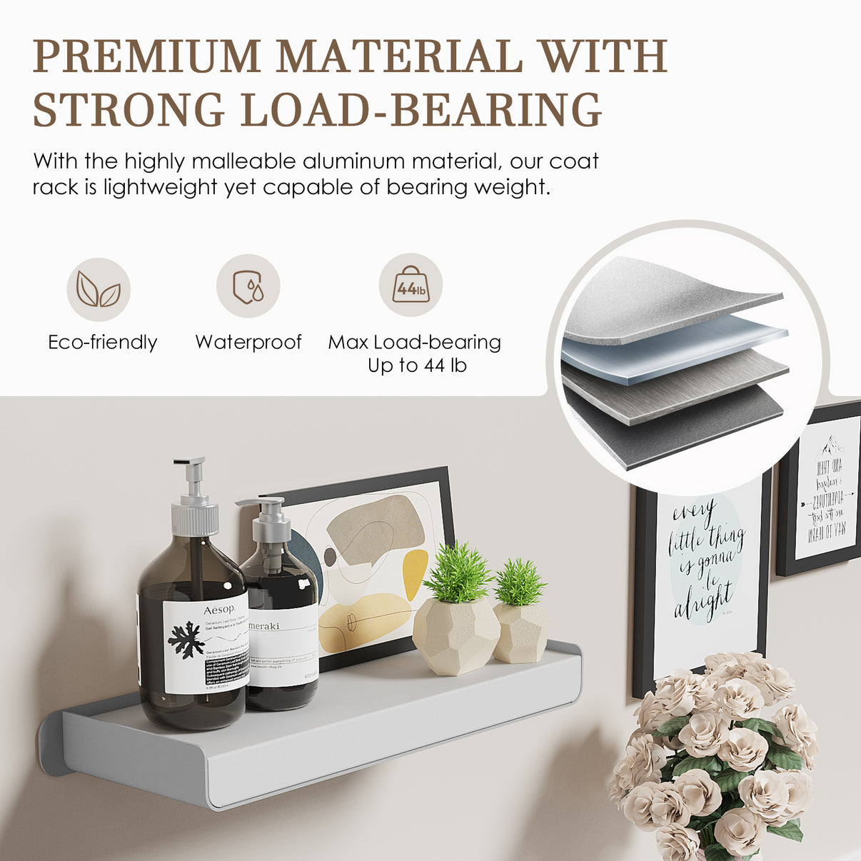 【Sturdy And Durable Shelf】KAPANOU floating shelves are crafted from heavy-duty and premium aluminum metal, ensuring they are waterproof, stable, and rust-resistant. With excellent weight capacity, it can easily hold up to 44 pounds and has a gray rubber pad on the back to protect walls from damage. If the wall is uneven, the pad can also play an adjusting role.