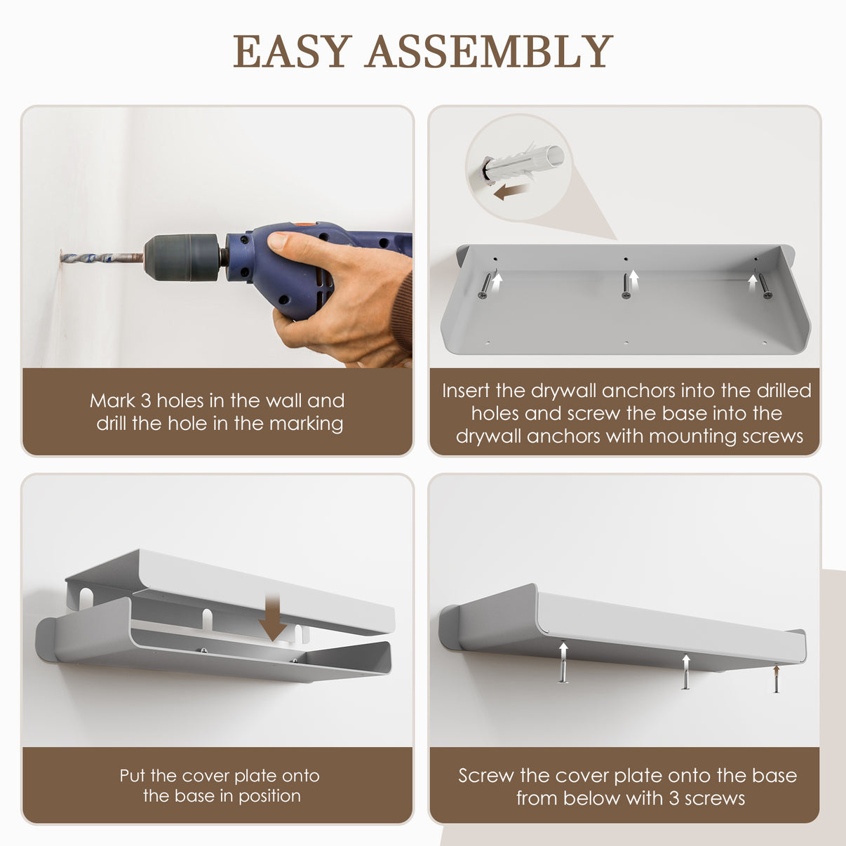 【Easy Assembly】All accessories are provided, including expansion screws and screws, along with clear instructions for easy installation. With just a few simple steps, you can effortlessly secure the floating shelf on the wall within 5 minutes.