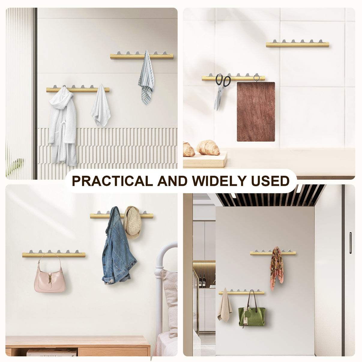 Practical and Multiple ApplicationsOur highly versatile clothes hanger features 6 hooks, allowing you to store a wide range of items. It can be conveniently used in various spaces such as behind doors, entryways, living rooms, bathrooms, kitchens, and even on balcony walls. Say goodbye to clutter and disarray as our clothes hanger helps you organize your belongings effortlessly.