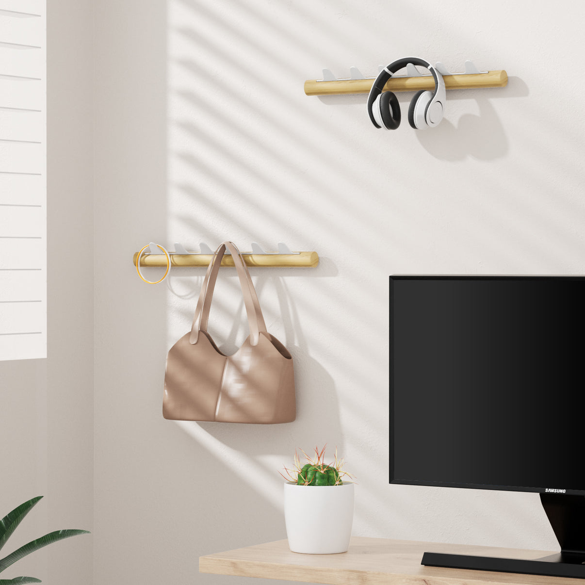 Award-Winning Coat RackThis modern and decorative coat rail is honored with the Muse Design Award and the French Design Award. It features a unique design that combines wood and metal to create a stylish and functional organizer for any room in your home. With rounded and smooth edges, our coat hooks will not harm any of your clothing. Perfect for hanging heavy coats, sweaters, hats, kid's backpacks, towels, kitchenware, and more.