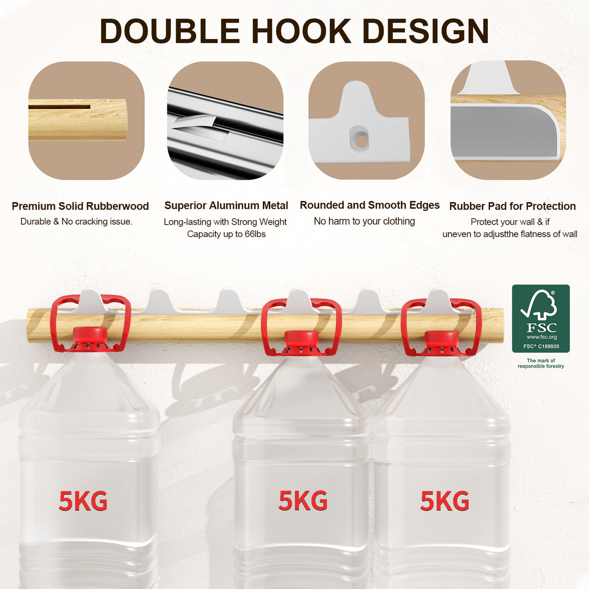 Sturdy and DurableThe KAPANOU coat rack is made of premium solid rubberwood with a varnish layer and high-quality aluminum alloy, making it waterproof, durable, and rust-resistant. The wood used is FSC-certified and environmentally friendly. With excellent load-bearing capacity, it can easily hold up to 66 pounds of weight without falling off.